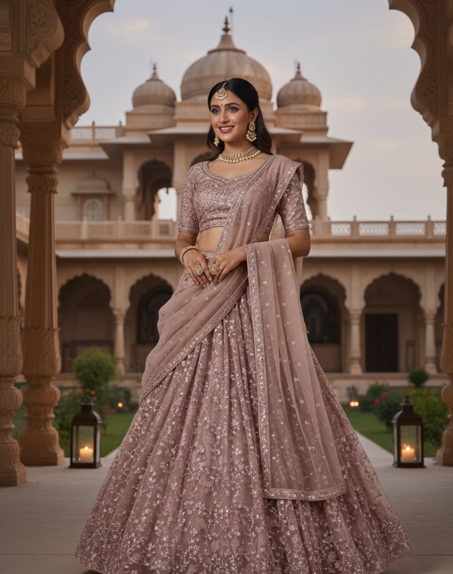 The intricate sequin embroidery creates a dazzling surface that sparkles effortlessly with even the slightest movement. Despite its rich appearance, the lehenga feels lightweight and comfortable, allowing for graceful mobility throughout long events.